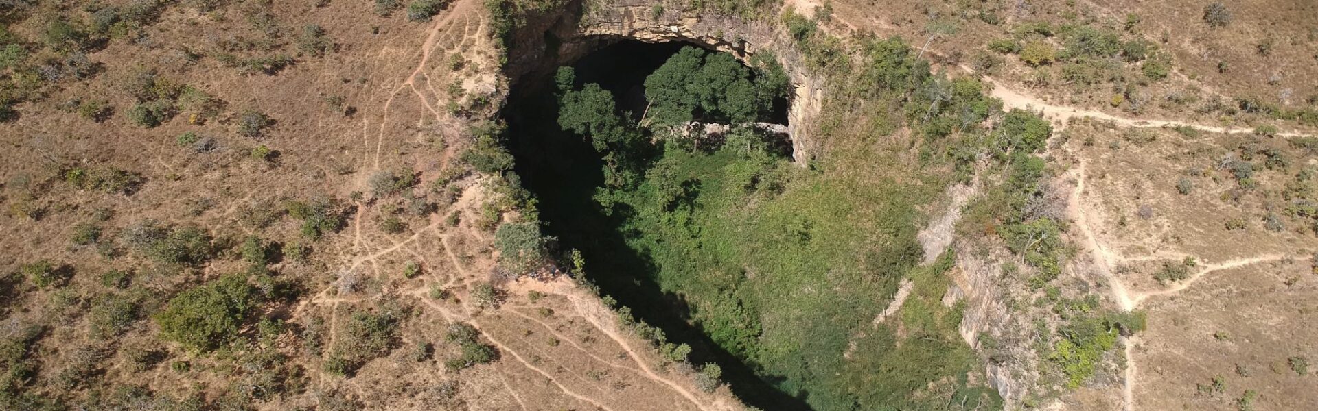 Através do rapel de 70m vamos alcançar o fundo da dolina que se formou pelo colapso do teto da caverna há milhares de anos.